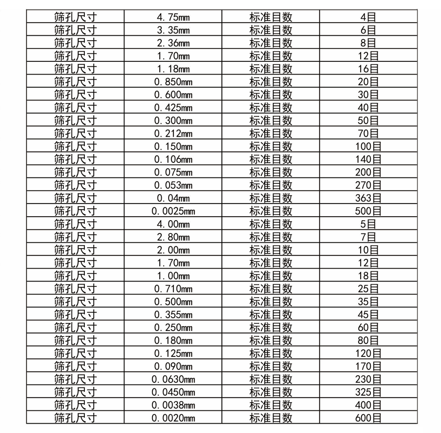 常用目孔/孔徑換算 規(guī)格φ200*50mm